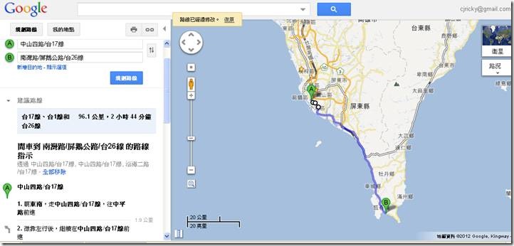 ▲圖片 31 Google-從這邊要達墾丁,還要走將近一百公里,花費將近3小時呢