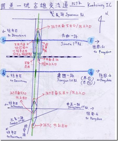 ▲圖片 1 筆者親自繪製的高雄交流道簡圖
